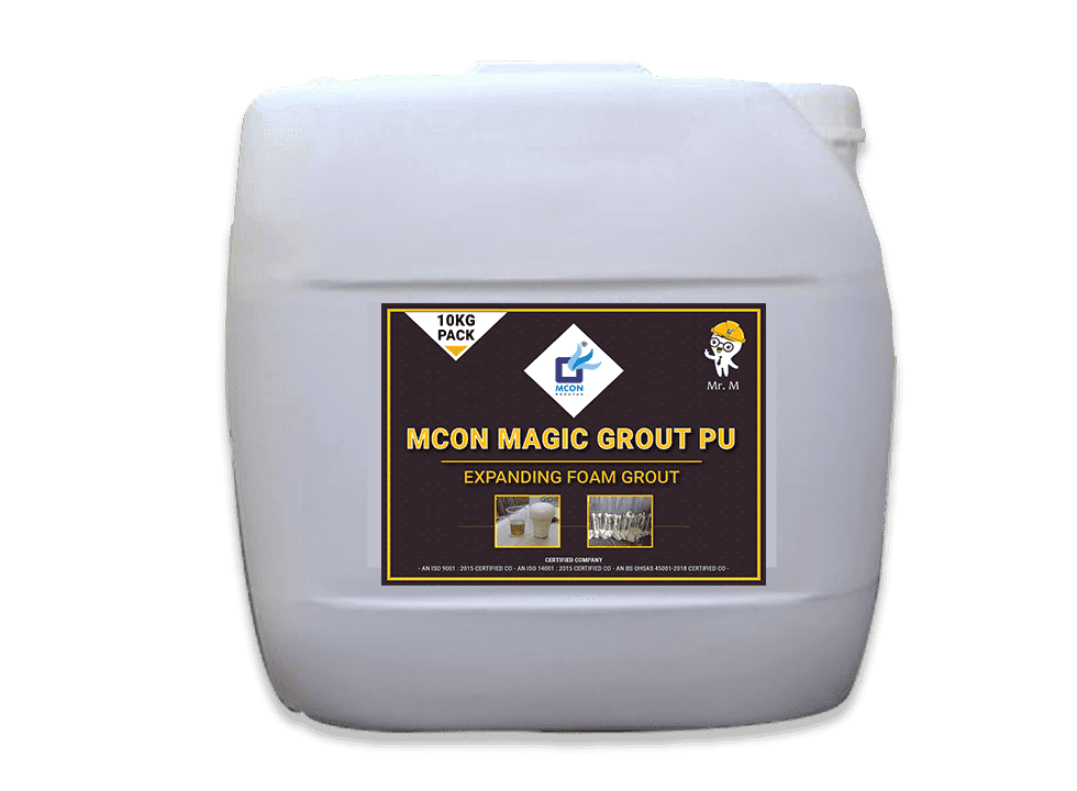 Mcon Magic Grout PU is a hydrophobic grout based on polyurethane Upon contact with water, Mcon Magic Grout PU reacts to closed cell rubber-like foam while expanding its volume up to 27 times. The cured material is of a