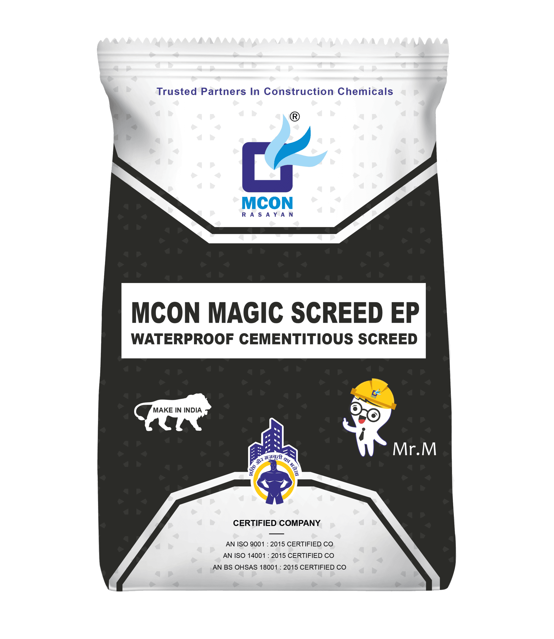- MCON Magic Screed is used for screeding on concrete and masonry walls, dams, wall and floor junctions.