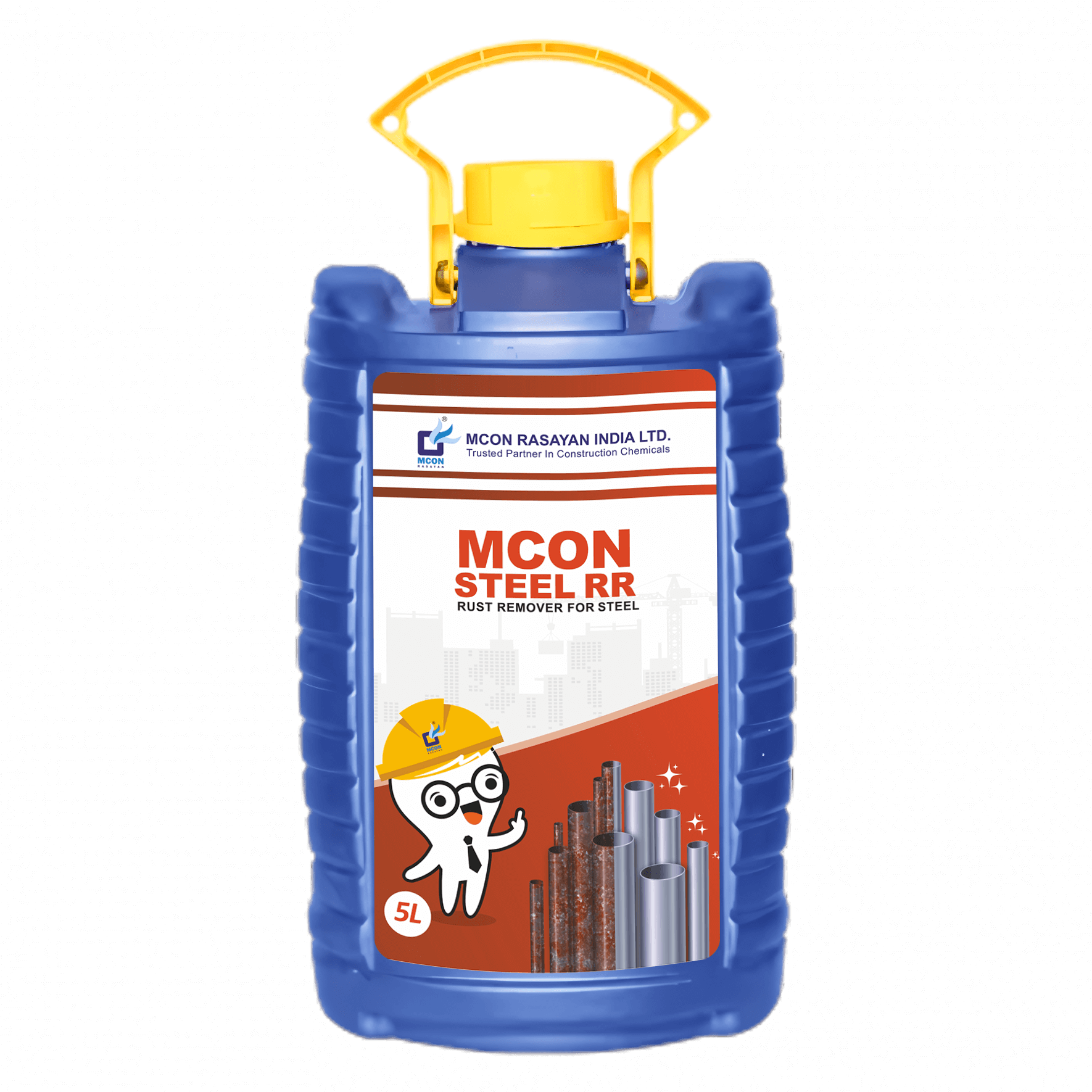 MCON STEEL RR is a rust treatment which helps in removing adamantly adhering rust in to a organo – complex compound, and excellent anti-corrosive properties. MCON STEEL RR removes the loose rust and converts adherent rust into a hard complex that attains a passive state without losing the strength of metal.